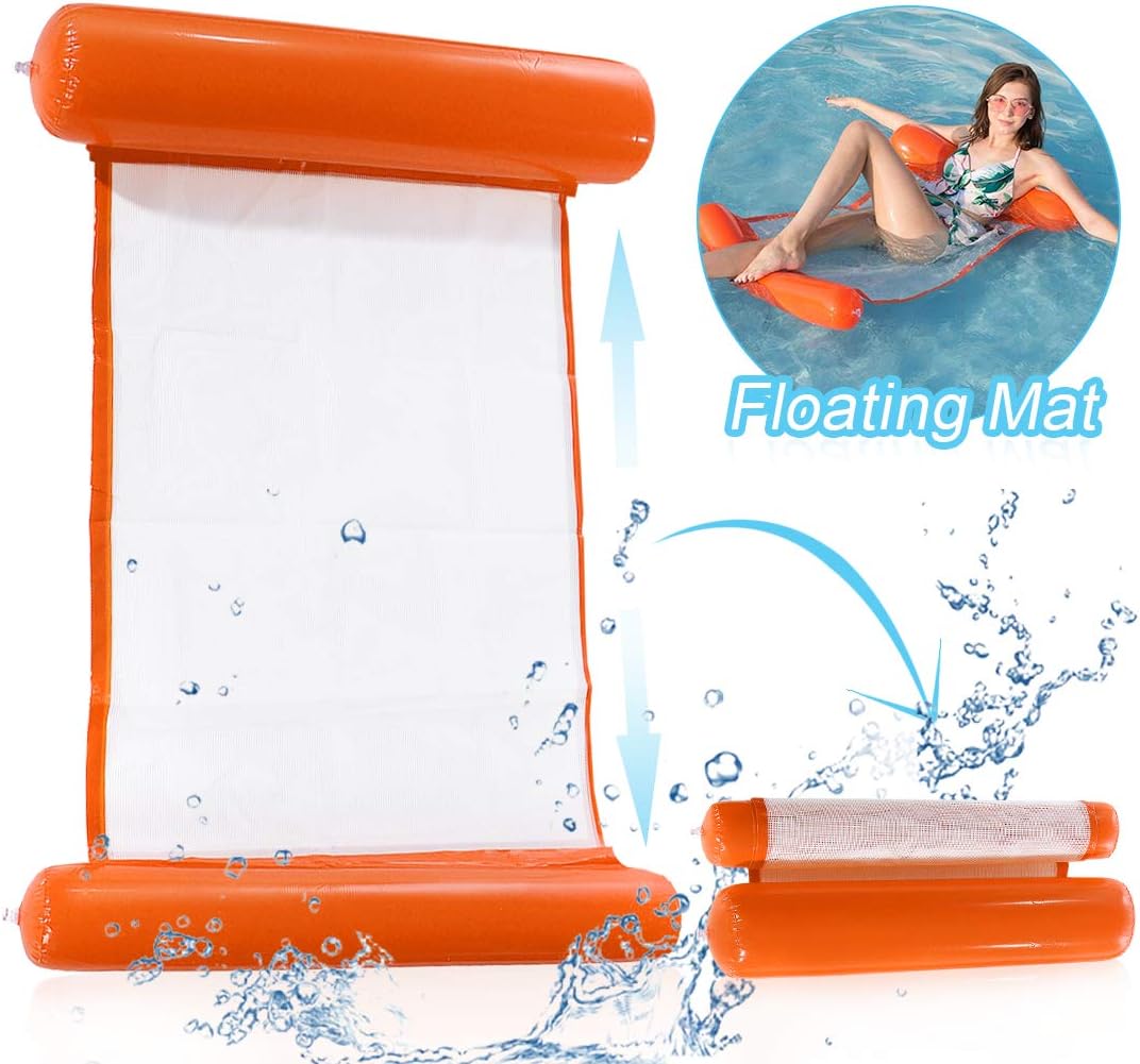 Orange O Kinee Inflatable Water Hammock Inflatable Floating Bed Pool Lounger Float Hammock Beach Mat Summer Outdoor Adult Comfortable Float Swimming Pool Lounger Air Sofa Pool Beach Toys Airbeds Inflatables