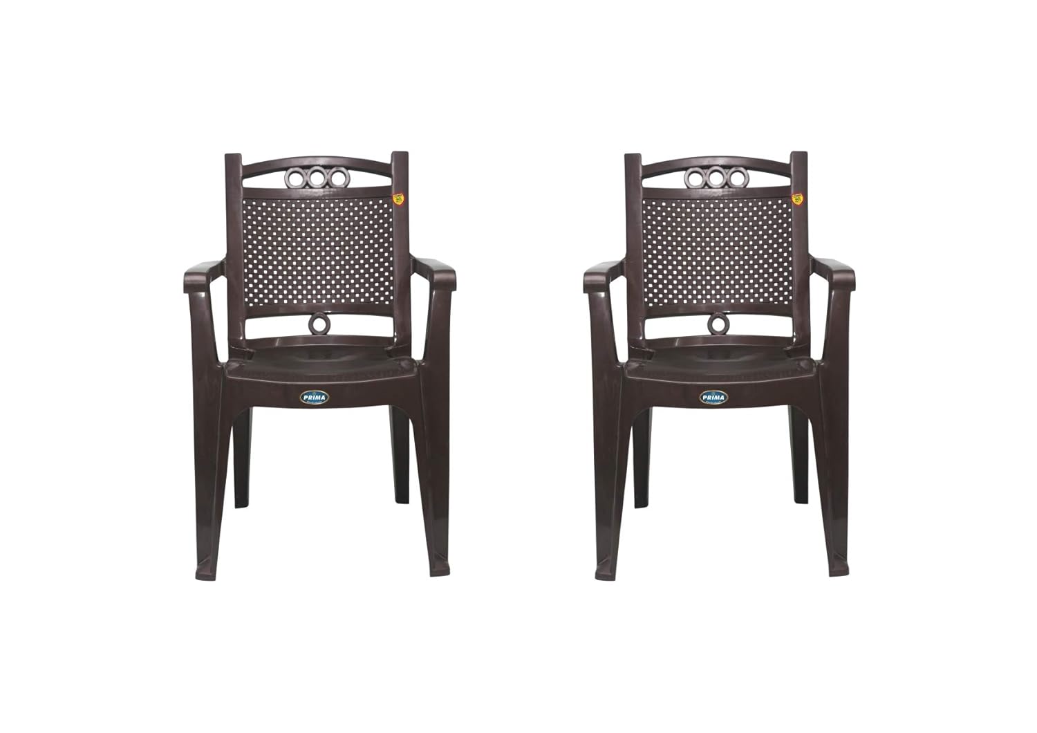 Prima Quikr 3 Dining Chair Indoor Outdoor Arm Chair Patio Chair 100 Virgin Plastic Stackable Chairs For Home Living Room Balcony Office Work And Shop Set Of 2 Weather Brown Color Amazon In Furniture